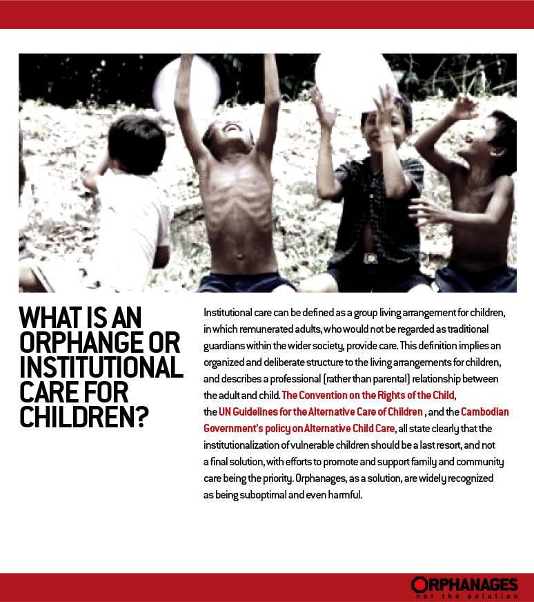 Most of these ’orphans’ should not be in orphanages, and instead should be with their families and communities. So why are these children being institutionalized? And why are we, as tourists or potential donors and volunteers, being asked to support their institutionalization? Perhaps we should start by looking at what an orphanage actually is.