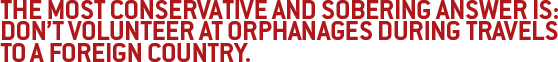 A. Any orphanage that will let you in off the street to volunteer for a day is NOT an orphanage you should be supporting. In other words, the answer to “which orphanage should I volunteer at today?” is “none of them”.